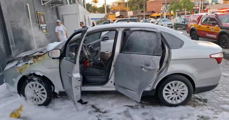 Porto Belo (SC), 15 de outubro de 2025 — Um princípio de incêndio mobilizou equipes do Corpo de Bombeiros no final da tarde desta quarta-feira, após um Fiat Siena prata começar a pegar fogo no estacionamento de um mercado localizado na Rua Francisco Severiano dos Santos, em Porto Belo.