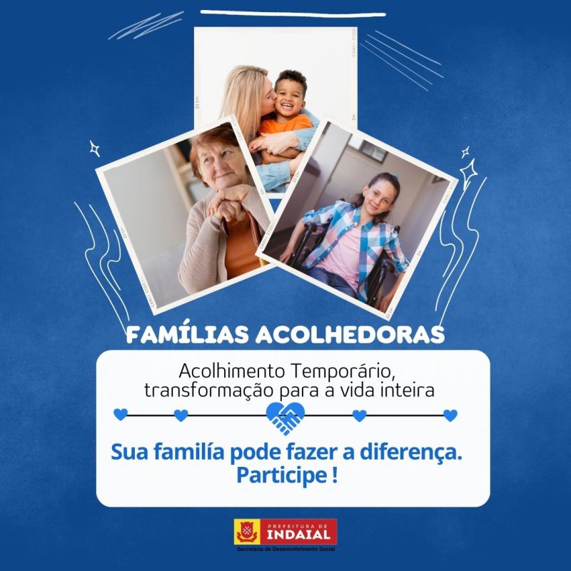 A Secretaria de Desenvolvimento Social de Indaial, por meio da Proteção Social Especial de Alta Complexidade, está cadastrando interessados em serem famílias acolhedoras. No cadastramento os interessados devem manifestar o público a que se dispõem a acolher, podendo optar por criança, adolescente, pessoa com deficiência ou pessoa idosa.