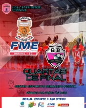 A equipe de Futsal Feminino da FME Indaial/ANGF disputa neste sábado, dia 30, as quartas de final da Liga Catarinense contra o time Gol de Bico/São Miguel do Oeste. O jogo de ida será em Indaial, no Centro Esportivo Bernardo Pisetta (rua Leoberto Leal, bairro Tapajós), às 18h30.