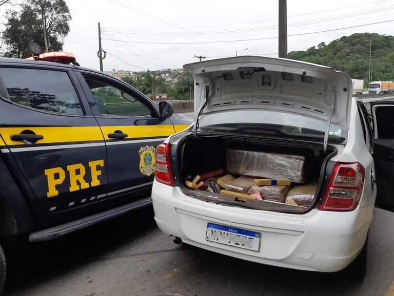 Na manhã desta terça-feira (03), policiais rodoviários federais apreenderam 202 quilos de maconha durante fiscalização a automóvel em Joinville. Um homem foi preso depois de provocar acidente.