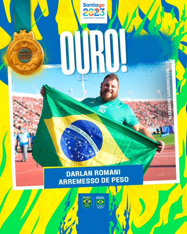 O brasileiro Darlan Romani garantiu o bicampeonato da prova de arremesso de peso dos Jogos Pan-Americanos ao alcançar a marca de 21,36 metros na disputa realizada nesta sexta-feira (3) no Estádio Nacional de Santiago (Chile).