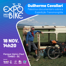 Ele vai estar na ExpoBike 2023 falando sobre essa expedição e exibindo o documentário que produziu. Será no sábado, dia 18, às 14h20, no Parque Henry Paul. A entrada é gratuita.