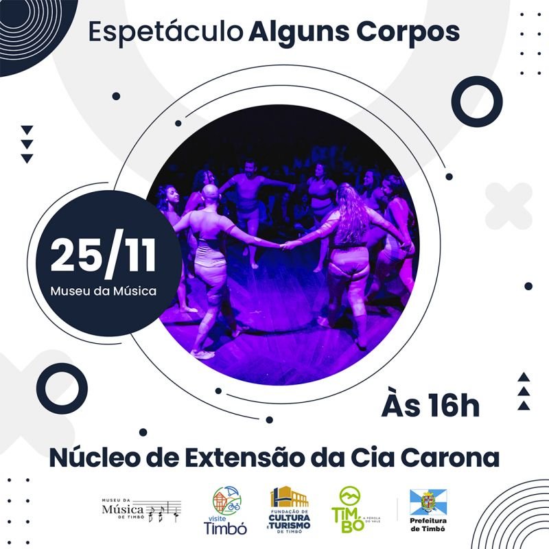 Neste sábado, dia 25 de novembro, o Núcleo de Extensão da Carona Escola de Teatro traz seu espetáculo “Alguns Corpos” para o Museu da Música, a partir das 16h.