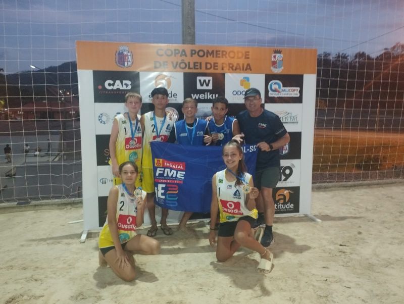 No último sábado, 25 de novembro, os atletas de Vôlei de Praia da FME Indaial brilharam na Copa Pomerode pela categoria Sub-15. No naipe masculino, as duplas Pedro e Davi e Kahel e Gustavo conquistaram o título de campeão e vice-campeão, respectivamente. Indaial também venceu no naipe feminino com as atletas Kauany e Duda. A equipe teve o acompanhamento do professor Marcondes.