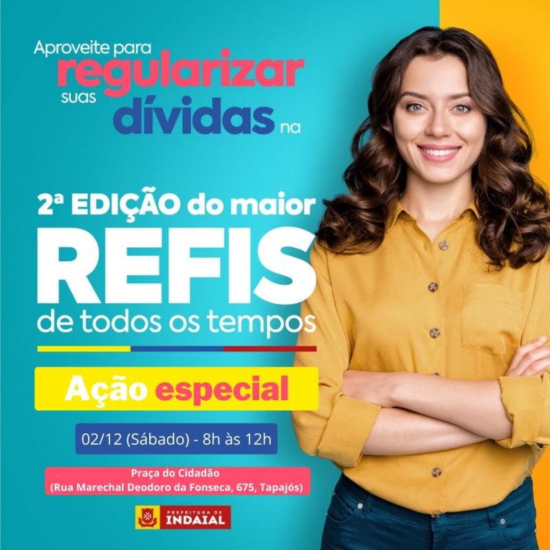 Neste sábado, 2 de dezembro, das 8h às 12h, a Praça do Cidadão (rua Marechal Deodoro da Fonseca, 675, Tapajós) irá abrir exclusivamente para uma ação especial do Refis 2023. Os contribuintes inadimplentes têm a oportunidade de quitar impostos municipais atrasados com descontos especiais no programa.