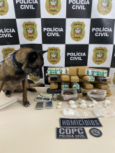 Durante as buscas ainda ocorreu a apreensão de aproximadamente 24 quilos de maconha divididos em tabletes, 153 gramas de skunk, 422 comprimidos de ecstasy, 11 porções de cocaína/pasta base pesando em torno de 325 gramas, três balanças de precisão e rolos de papel filme e plásticos para embalar drogas. As buscas resultaram também em importante material e informações a respeito do homicídio investigado.