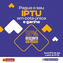 A partir de 1º de março estarão disponíveis no site da Prefeitura de Indaial as guias para pagamento do IPTU 2024, assim como das taxas de coleta de lixo e de urbanização e conservação de logradouros públicos. Para fazer a emissão basta ter o CPF/CNPJ do proprietário, inscrição ou cadastro imobiliário do imóvel e acessar o site: www.indaial.sc.gov.br/iptu
