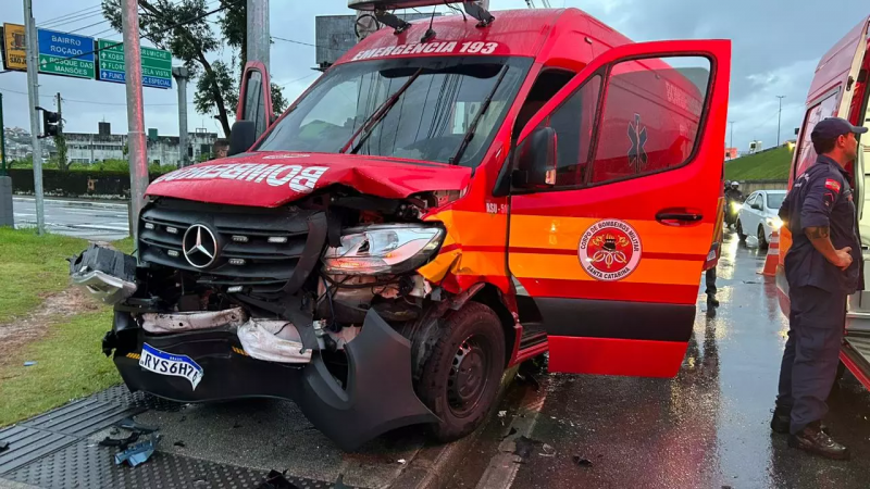 Na manhã deste sábado (13), uma ambulância do Corpo de Bombeiros se envolveu em um acidente enquanto transportava um paciente para o hospital. O fato ocorreu na BR-101, no bairro Roçado, em São José. Felizmente, não houve feridos, apenas os veículos ficaram danificados.