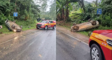 Ao chegarem ao local, os bombeiros encontraram a mulher ainda presente. De acordo com o relato, ela estava conduzindo o veículo quando perdeu o controle durante uma curva e capotou. A vítima também mencionou ferimentos nos braços.
