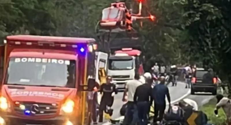 De acordo com as informações iniciais, a moto, com um condutor e um passageiro, colidiu de frente com o caminhão. As faixas na rodovia já foram liberadas após o acidente.