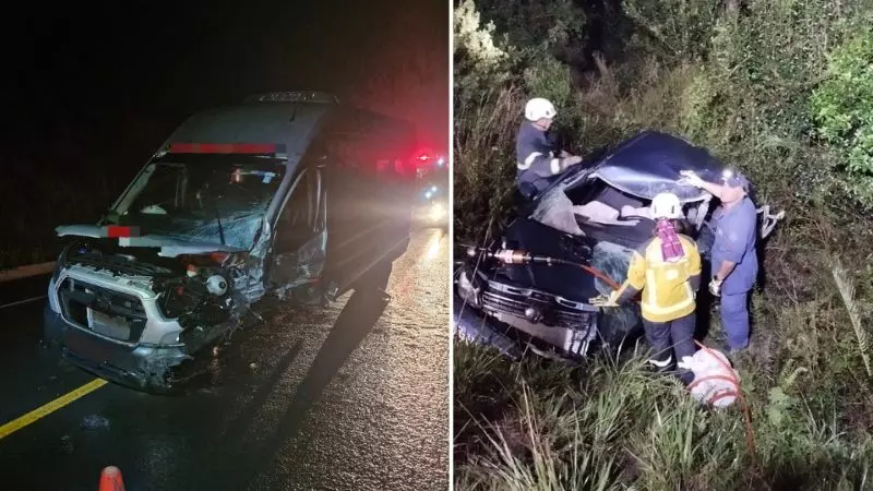 Na madrugada desta segunda-feira, ocorreu um grave acidente na BR-282, próximo ao município de Bocaina do Sul, na Serra Catarinense. A colisão frontal envolveu um Volkswagen Voyage azul e uma van Ford Transit prata, resultando em consequências trágicas.
