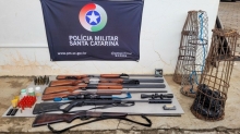 Na manhã desta terça-feira, 16, a Polícia Militar de Santa Catarina (PMSC), por meio do Comando de Polícia Militar Ambiental (CPMA), prendeu dois homens durante o cumprimento de dois mandados de busca e apreensão expedidos pela Vara Criminal da Comarca de Curitibanos. A ação, que faz parte da operação Caça, foi registrada no interior do município de Frei Rogério.
