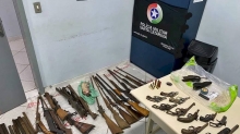Com um mandado de busca, os policiais localizaram diversas armas de fogo, sendo diversas espingardas, garruchas e revólveres. Ao todo foram localizadas dez espingardas (mais uma desmontada), quatro garruchas (mais uma desmontada) e cinco revólveres, além de diversas espingardas de pressão.