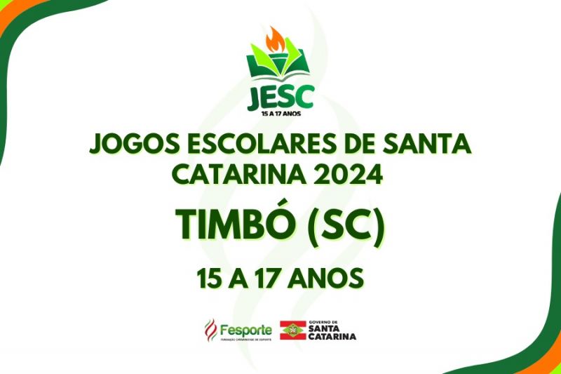 O Governo do Estado por intermédio da Fesporte realiza entre os dias 9 a 19 de agosto a etapa estadual dos Jogos Escolares de Santa Catarina (categoria 15 a 17 anos) e que será realizado no município de Timbó (SC). Participam do evento esportivo 4.380 estudantes catarinenses divididos em 662 equipes.