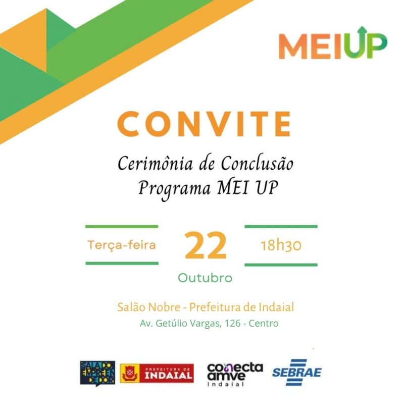 Na próxima terça-feira, 22, ocorrerá o encerramento do Programa MEI UP, realizado pela Sala do Empreendedor e Sebrae/SC, com apoio do Conecta Amve Indaial. O evento tem início às 18h30, no Salão Nobre da Prefeitura. Essa cerimônia de conclusão marca um ciclo de aprendizado e desenvolvimento para os microempreendedores individuais da cidade.