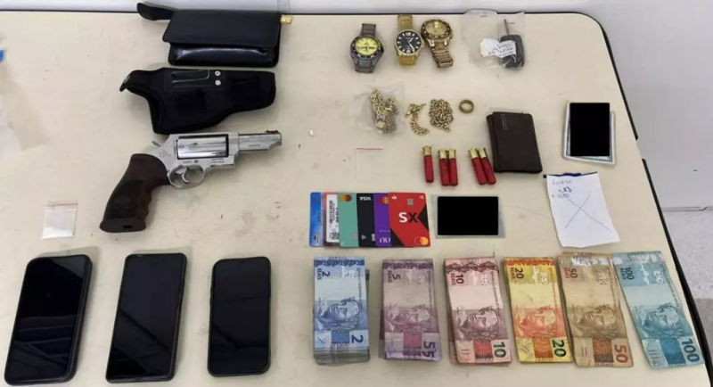 No assoalho do veículo, ao lado do passageiro, foi encontrado um revólver Taurus RT410, calibre 36, com cinco munições. Embora a arma estivesse registrada no nome do motorista, a validade do registro estava vencida desde agosto do ano anterior. Além disso, uma embalagem contendo 0,5 gramas de cocaína foi encontrada.