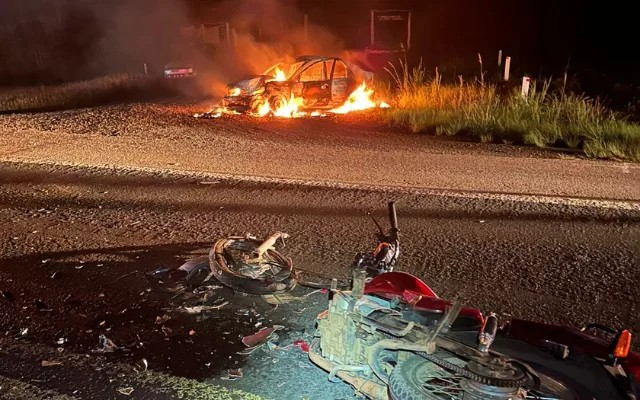 Na noite de domingo (27), um grave acidente em Curitibanos resultou na morte de um jovem de 19 anos e deixou outras três pessoas feridas. A colisão, ocorrida por volta das 19h09 na BR-470, envolveu um carro Prisma, que pegou fogo ao colidir com uma moto Honda CG-150. Equipes do Corpo de Bombeiros de Curitibanos e do SAMU foram mobilizadas para atender à ocorrência.
