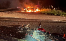 Segundo os bombeiros, o impacto fez o carro pegar fogo, sendo necessário retirá-lo da pista para controlar as chamas. O motorista do Prisma, um homem de 57 anos, estava consciente, com suspeita de fratura na mão direita, enquanto a passageira, de 53 anos, apresentava sinais de hipertensão, mas sem ferimentos aparentes.