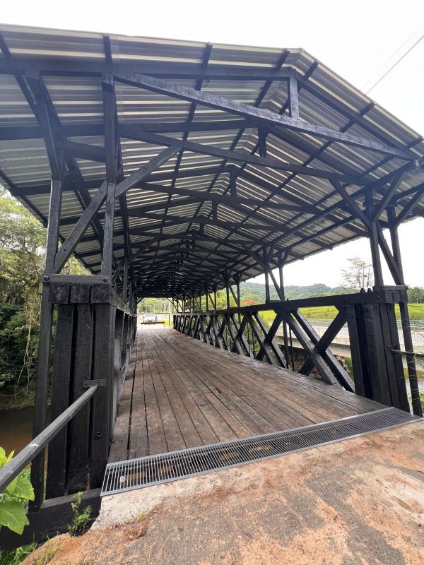 A partir de agora, a Ponte Coberta será utilizada somente para travessia de ciclistas e pedestres, tendo em vista que na via ao lado foi construída uma ponte de concreto para o tráfego de veículos.