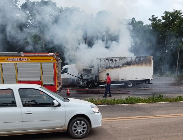 Segundo relato do motorista aos bombeiros, o veículo seguia no sentido litoral-interior quando ele percebeu fumaça entre a cabine e a carroceria. Em uma rápida ação, o condutor estacionou no acostamento, mas as chamas se alastraram rapidamente, consumindo o baú do caminhão.