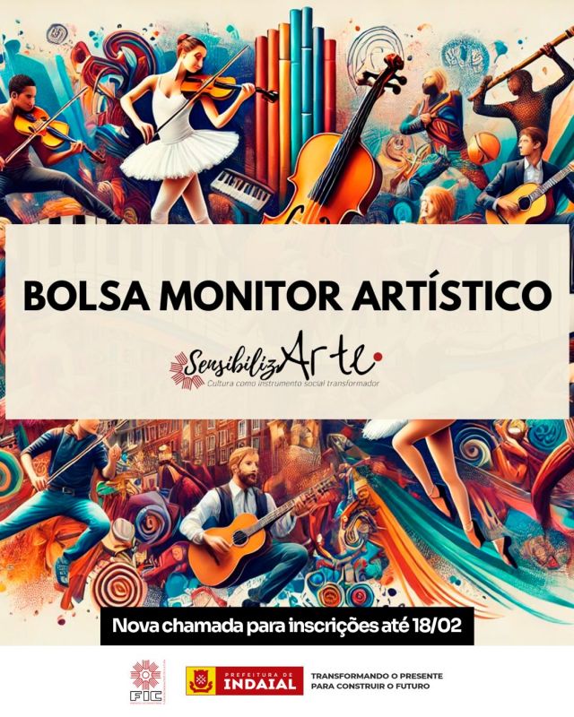 A Fundação Indaialense de Cultura abriu nova chamada para inscrições no Programa Bolsa Monitor Artístico 2025, que faz parte do Programa SensibilizArte. Profissionais interessados podem fazer seu cadastro até 18 de fevereiro no site: https://www.ficindaial.com.br/fundacao/edita-003-2025-edital-bolsa-monitor-artistico-2025