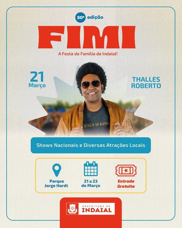 De 21 a 23 de março, a Prefeitura promoverá a 50ª FIMI (Festa de Instalação do Município de Indaial) em comemoração aos 91 anos de emancipação político-administrativa da cidade. O evento acontecerá no Parque Municipal Jorge Hardt (Av. Alfredo H. Hardt, bairro Estrada das Areias) com entrada gratuita.