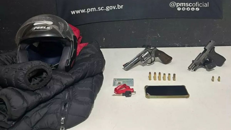 Ainda no sábado, equipes da PM realizaram buscas e conseguiram localizar o suspeito em Itajaí. Ele estava com duas armas em sua posse. Durante a abordagem, confessou que havia ido até a casa da vítima para comprar uma arma, mas, após o desentendimento, utilizou o próprio revólver que estava negociando para cometer o homicídio.