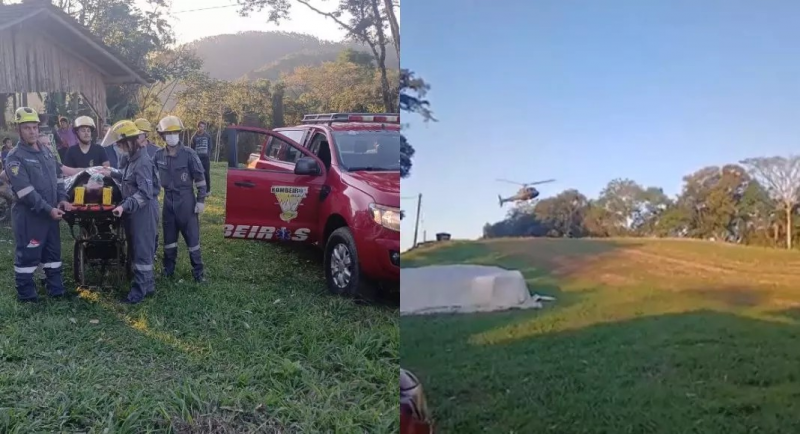 Devido ao difícil acesso ao local do acidente, o resgate contou com o suporte da aeronave Águia, da Polícia Militar. A ação foi coordenada pelo Corpo de Bombeiros Voluntários de Indaial, que já estava na região quando o helicóptero pousou, permitindo a retirada segura do motociclista.