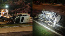 Motor é arrancado de carro em capotamento impressionante na Beira-Mar Norte, em Florianópolis