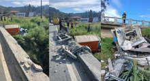 Caminhão cai de ponte na BR-470 em Rodeio