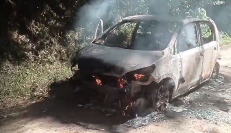 Em Pomerode - Carro pega fogo e é consumido pelas chamas