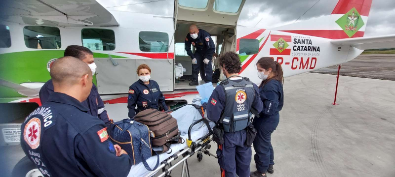 Em 31 de dezembro de 2005, foi implantado o serviço aeromédico, com suporte avançado de vida, utilizando o helicóptero da Polícia Rodoviária Federal. Já em 2010, a parceria se estendeu ao Corpo de Bombeiros Militar, com o helicóptero Arcanjo. Atualmente, o Estado conta com o apoio de cinco helicópteros (dois Arcanjos, dois da Polícia Civil – SAER e o Águia da Polícia Militar) e dois aviões da Secretaria de Estado da Saúde (SES), um baseado em Joaçaba e o outro em Florianópolis. O serviço garante rapidez nos atendimentos e no transporte de pacientes. Em 15 anos, foram realizados 13.498 atendimentos nos helicópteros e 2.828 nos aviões.