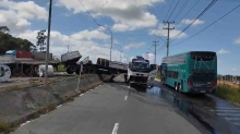 Um engavetamento registrado na manhã desta quarta-feira (7) provocou a interdição parcial da BR-101, em Balneário Piçarras, no litoral norte de Santa Catarina. O acidente ocorreu no km 101 da rodovia, no sentido Sul. A pista principal já foi liberada, mas as vias marginais permanecem bloqueadas sem previsão de liberação.
