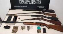 Durante a operação, os policiais apreenderam um verdadeiro arsenal. Entre os itens encontrados estavam um rifle CBC calibre .22, uma carabina Remington do mesmo calibre, espingardas calibres .32 e .38, uma espingarda de ar comprimido modelo NITRO, três supressores de ruído, uma mira eletrônica da marca Rossi e 147 munições de diversos calibres.