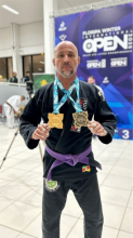 Carlos sagrou-se campeão na categoria meio-pesado, faixa roxa, e conquistou também a medalha de bronze na categoria absoluto, faixa roxa.
