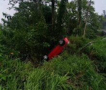Veículo capota e fica pendurado em ribanceira na BR-470 em Rodeio