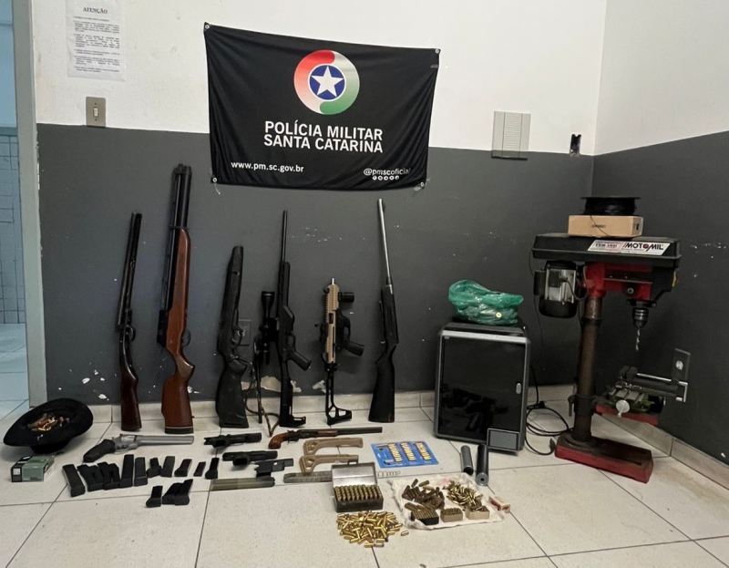 As guarnições apreenderam 10 armas de fogo prontas para uso, além de mais de 500 munições de diversos calibres. Também foram recolhidos equipamentos utilizados na fabricação e recarga de armamentos, incluindo uma caixa de isolamento acústico, usada para testes de disparo.
